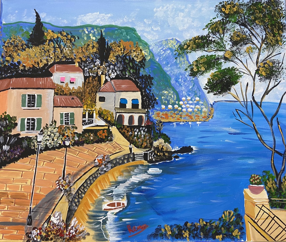 Handmade Acrylic Canvas painting. A calm and serene evening in an Italian Village. A perfect living room decor piece.